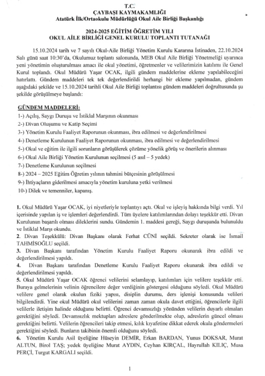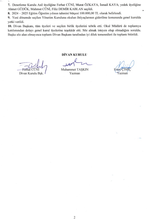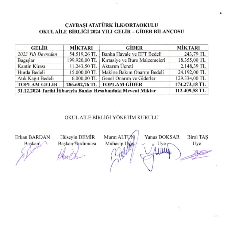 2024 YILI OKUL AİLE BİRLİĞİ GELİR - GİDER LİSTESİ
